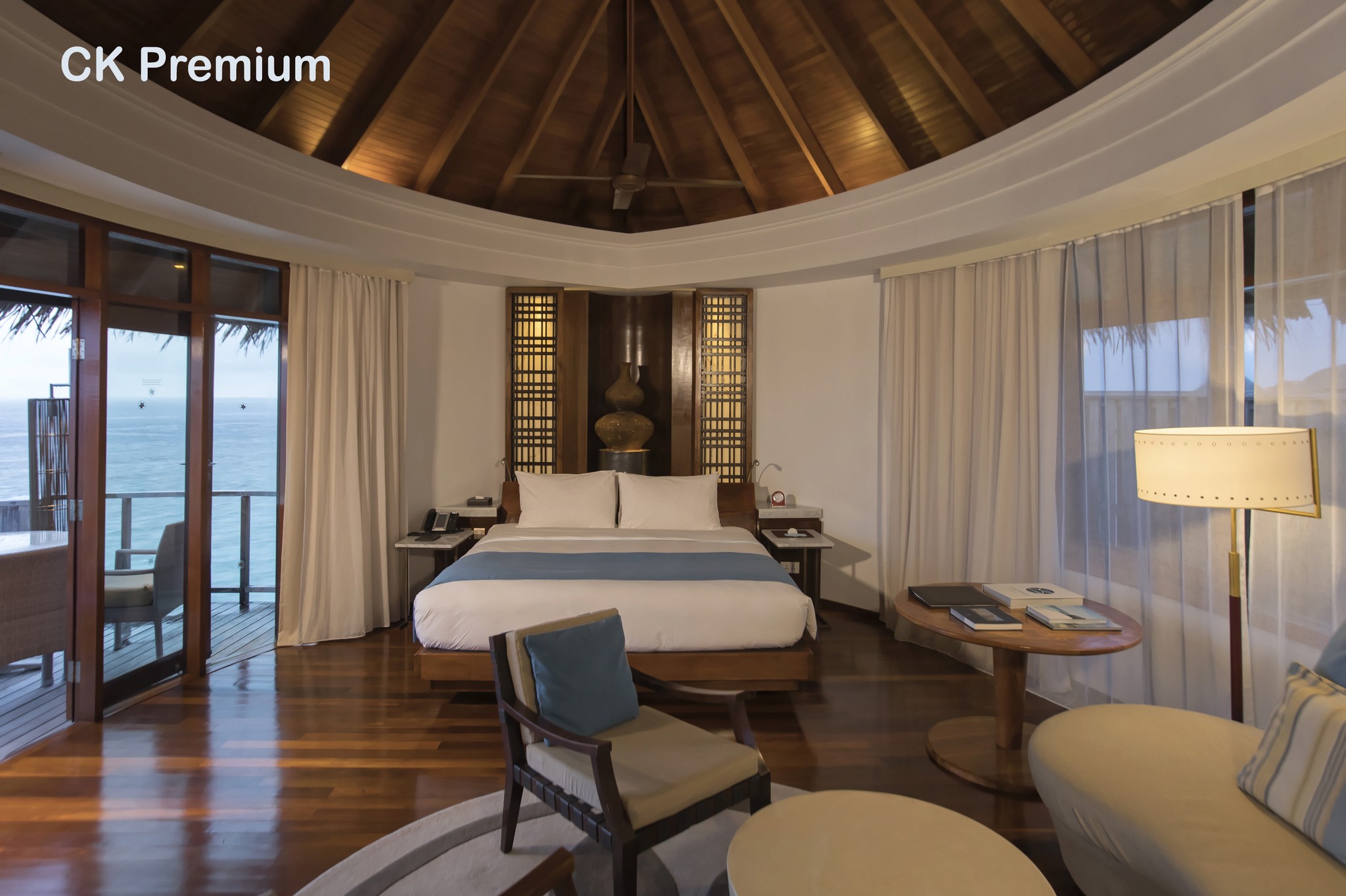 Ve všech vilách je klimatizace, koupelna se sprchovým koutem a vanou, telefon s mezinárodní předvolbou, plazmová TV se satelitními programy, minibar, varná konvice na přípravu kávy a čaje, chladnička vín, DVD přehrávač, elektronický trezor, vysoušeč vlasů a wifi připojení, župan, pantofle, žehlící... více